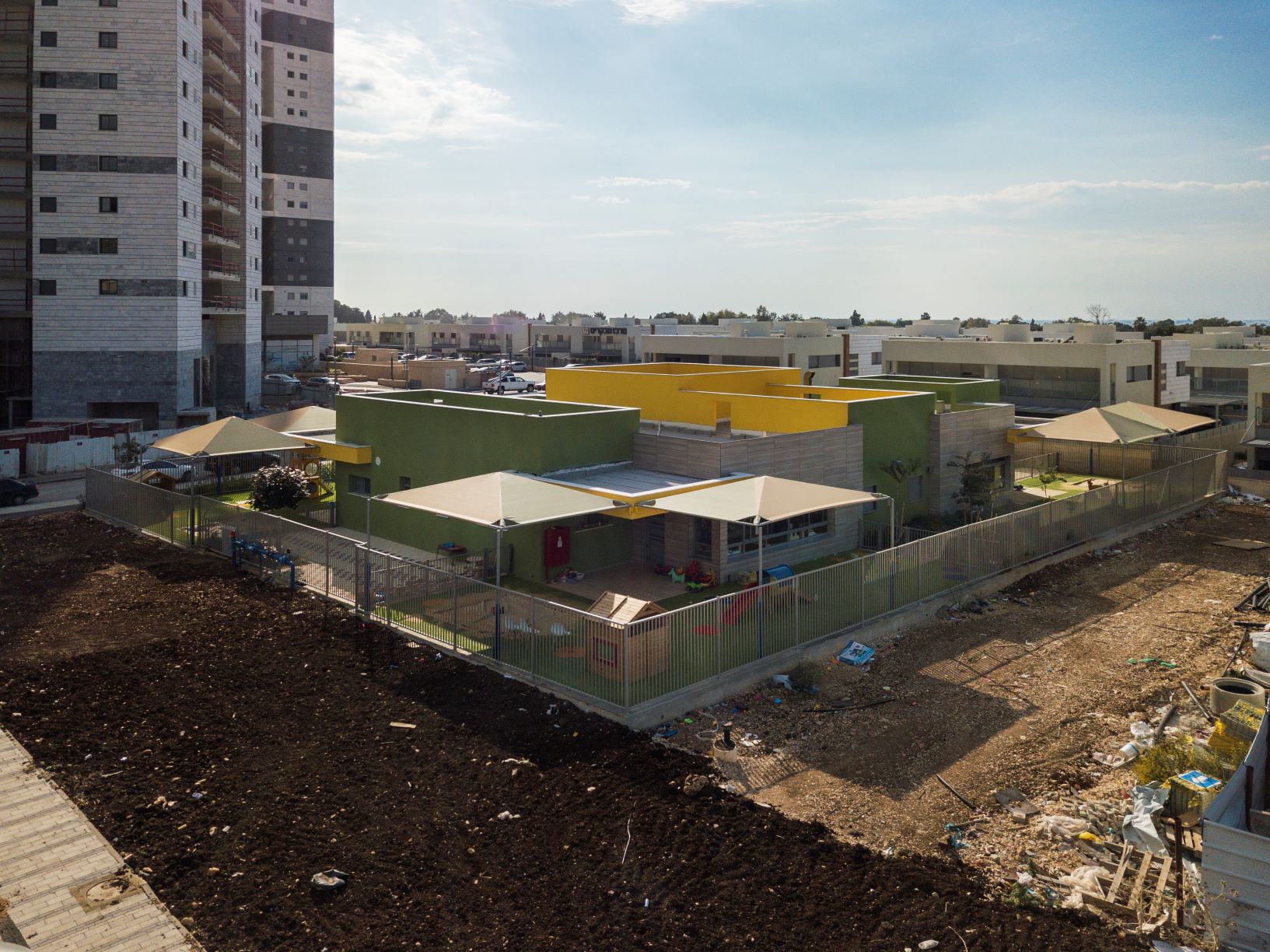 מעון יום גלי כרמל מבנה בעל 3 כיתות למעונות יום לפי פרוגראמת התמ"ת, בעל חלל לובי מרכזי מקשר. המבנה מייצג את החומריות והשפה האדריכלית המתאימה לשכונה החדשה המתפתחת.יזם: עיריית טירת הכרמלמיקום: טירת הכרמלתכנון: 2019-2020ביצוע:2020-2021 הקודם הבא